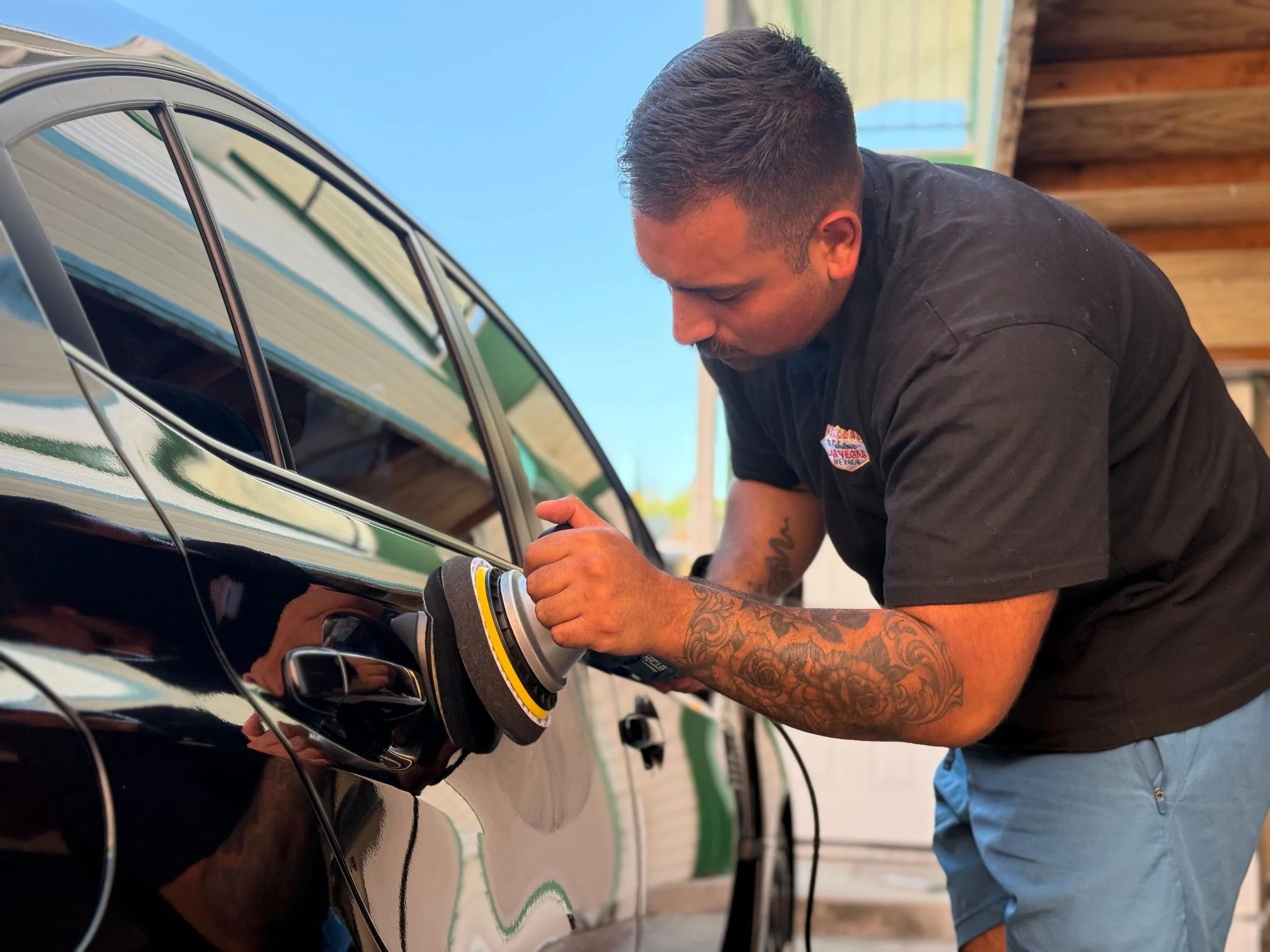 Exterior hand wash and interior detail. Includes vacuuming, cleaning of all panels, dashboard, center console, and steering wheel.